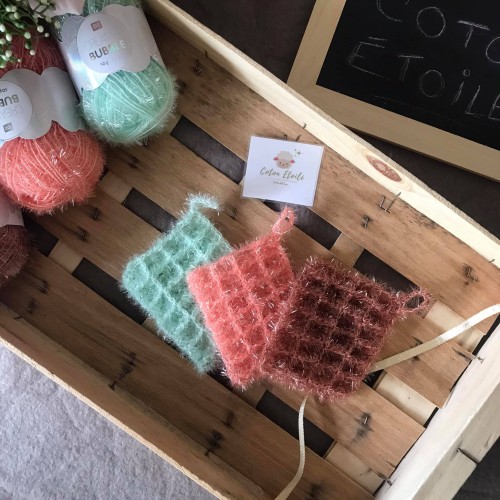 Je vous propose ses éponges pour votre vaisselle en fil Bubble spécial éponge durable et lavable dès 60 degrès.