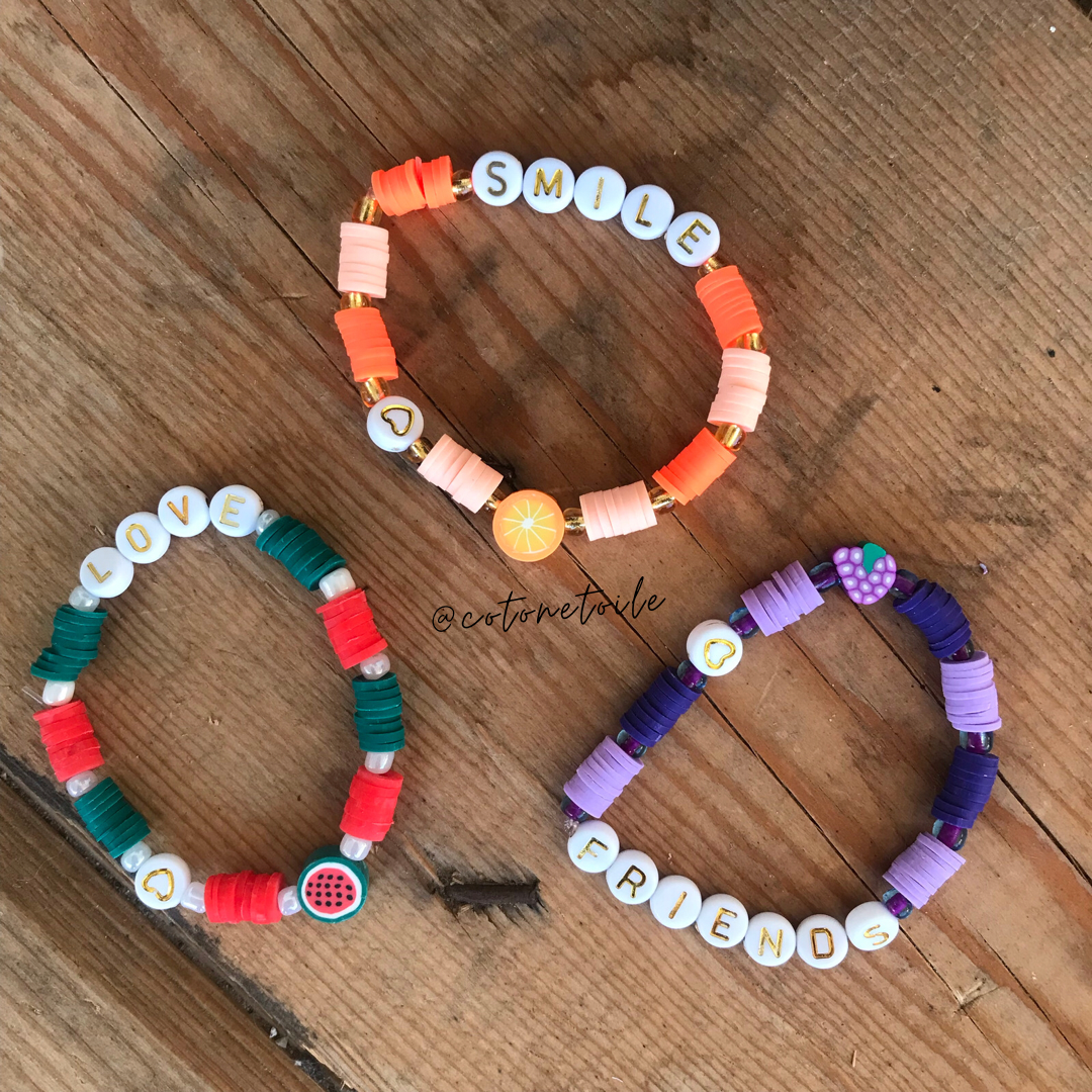 Bracelets enfants Heishi avec ses fruits très colorés et un mot ???