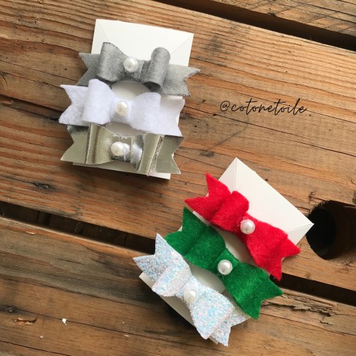 * Petites Barrettes / pince crocodile \ en feutrine en noeud papillon - et 1 en Simili Cuir - lot de 3